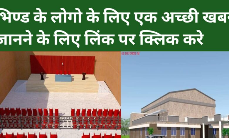 भिंड जिले के लिए एक अच्छी खबर है. यहां के कम्युनिटी हॉल में जिले का पहला ऑडिटोरियम बनाया जाएगा जिससे कलाकारों को अपनी कला प्रदर्शन करने का अच्छा अनुभव प्राप्त होगा क्या है ऑडिटोरियम आइए जानते हैं इसके बारे में..