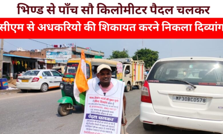भिंड जिले मे एक दिव्यांग अपनी फरियाद लेकर वैसाखी के सहारे 500 किलोमीटर दूर पदयात्रा करते भोपाल मुख्यमंत्री शिवराज सिंह चौहान से मिलने निकल पड़ा,पीड़ित भिण्ड जिले के अकोड़ा गांव का रहने वाला है भिण्ड के अधकरियो की अनसुनी की वजह से परेशान है जो खुद मामा शिवराज से मिलकर दिव्यांगो की पीड़ा बताएगा,इसके अलावा अन्य चार सूत्रीय मांग भी मामा के सामने रखेगा